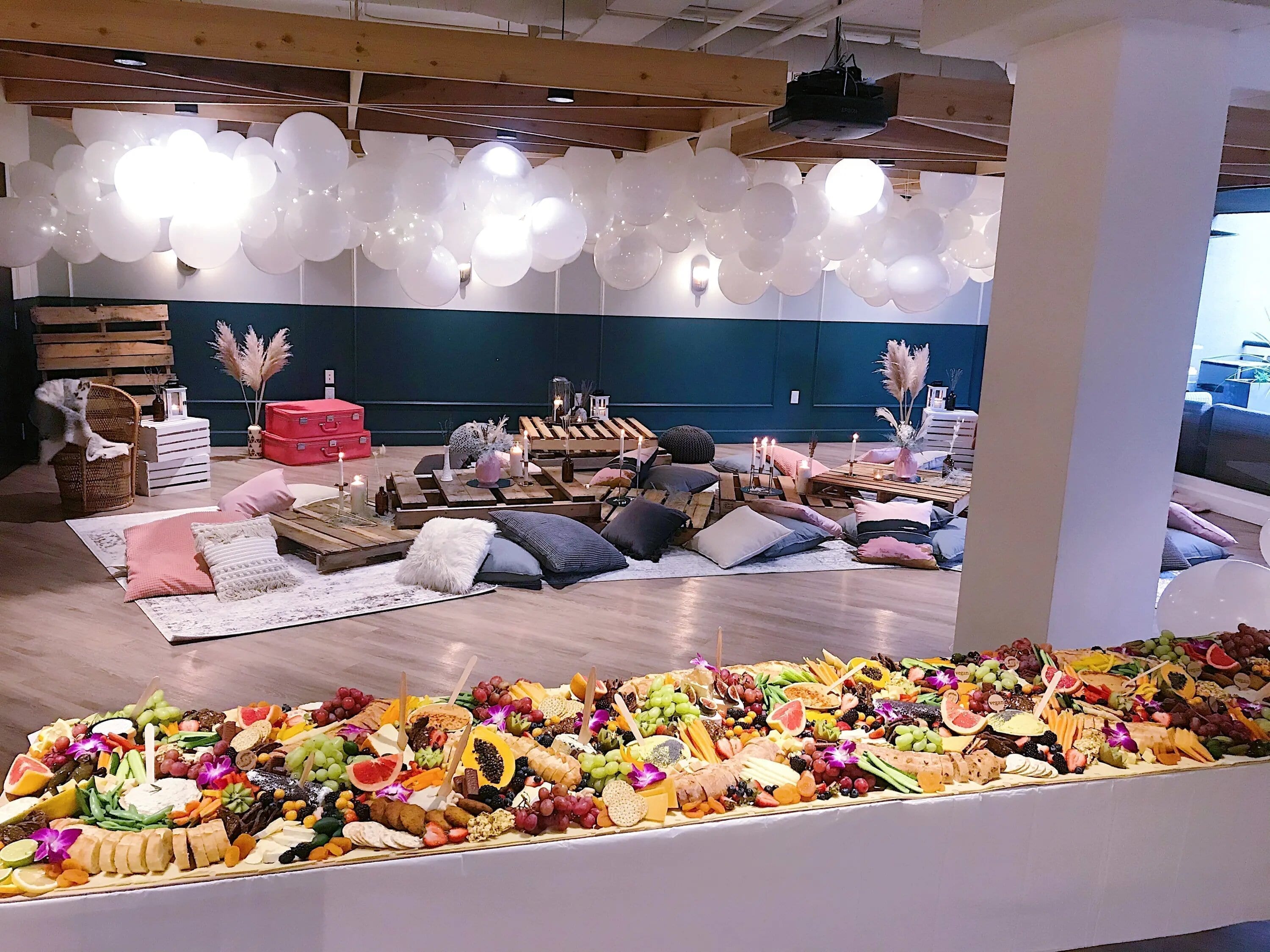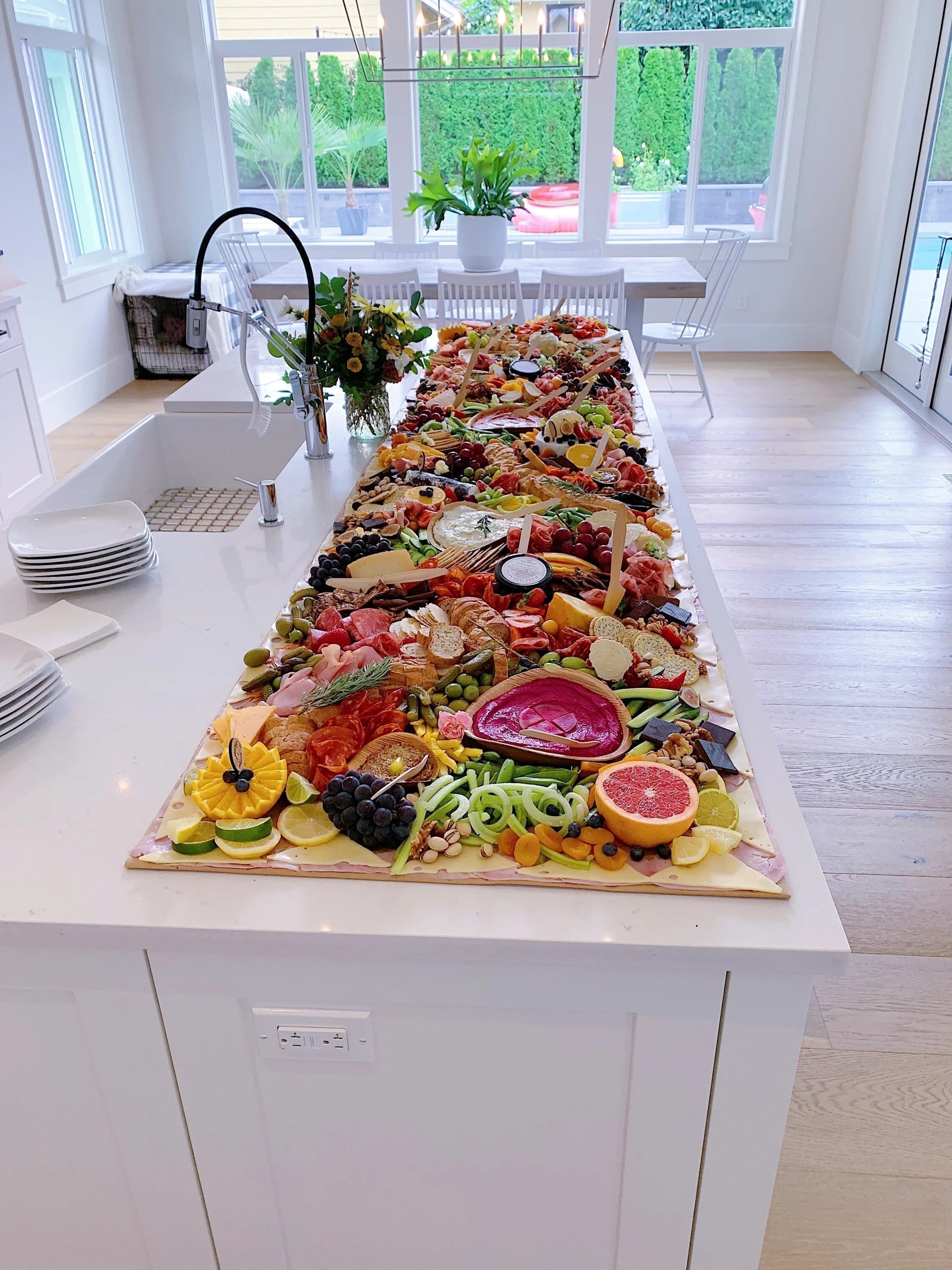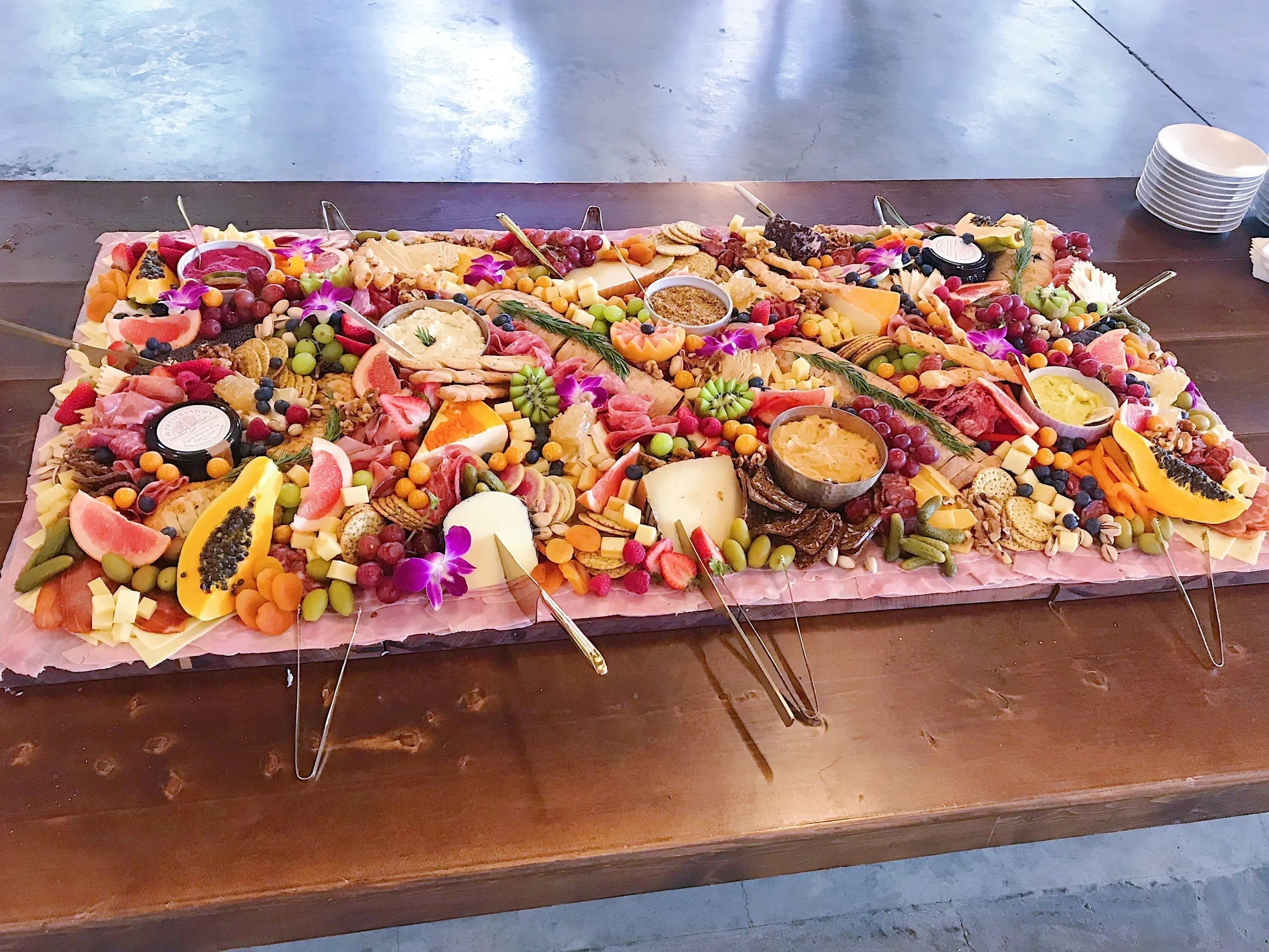 Fresh seasonal produce, fine cheeses, charcuterie, pate, salty snacks, artisan breads and crackers, local artisan preserves, olives and cornichons, nuts, dried fruit, wholesome dips and spreads, sweets and more, will be carefully styled into a work of art!